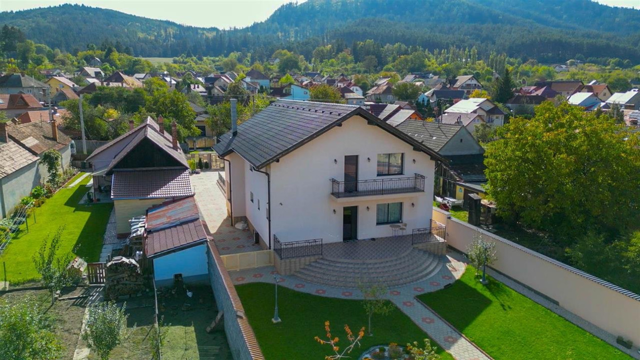 Rezidenta dispune de sistem de supraveghere video, doua garaje cu telecomanda, terasa acoperita la intrare, toate pe un teren generos de 985 mp.